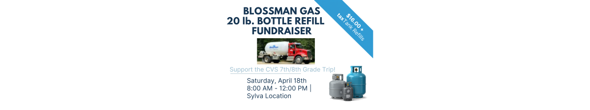 Blossman Gas 20lb Bottle Refill Fundraiser Date and Time Saturday Apr 18, 2026 8:00 AM - 12:00 PM EDT April 18, 2026 8am - Noon Location Blossman Gas Sylva Location Fees/Admission $16 plus tax tank refills Set a Reminder Enter your email address below to receive a reminder message. Email address Select the amount of Days before the event -- Select Days Before Event -- 1 Day 2 Days 3 Days 1 Week Captcha Validation Please complete the Captcha Submit Description Blossman Gas 20lb Bottle Refill Fundraiser Set a Reminder Enter your email address below to receive a reminder message. Email address Select the amount of Days before the event -- Select Days Before Event -- 1 Day 2 Days 3 Days 1 Week Captcha Validation Please complete the Captcha Submit Share × Print Email Add to Calendar Facebook Twitter LinkedIn Tell a Friend × Select Calendar Type × Google Yahoo iCal (Outlook, Apple, or other)