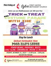 Trick or Treat and Poor Man's Lunch Date and Time Friday Oct 31, 2025 10:00 AM - 2:00 PM EDT Trick or Treat and Poor Man's Lunch Set a Reminder Enter your email address below to receive a reminder message. Email address Select the amount of Days before the event -- Select Days Before Event -- 1 Day 2 Days 3 Days 1 Week Captcha Validation Please complete the Captcha Submit Set a Reminder Enter your email address below to receive a reminder message. Email address Select the amount of Days before the event -- Select Days Before Event -- 1 Day 2 Days 3 Days 1 Week Captcha Validation Please complete the Captcha Submit Share × Print Email Add to Calendar Facebook Twitter LinkedIn Tell a Friend × Select Calendar Type × Google Yahoo iCal (Outlook, Apple, or other)